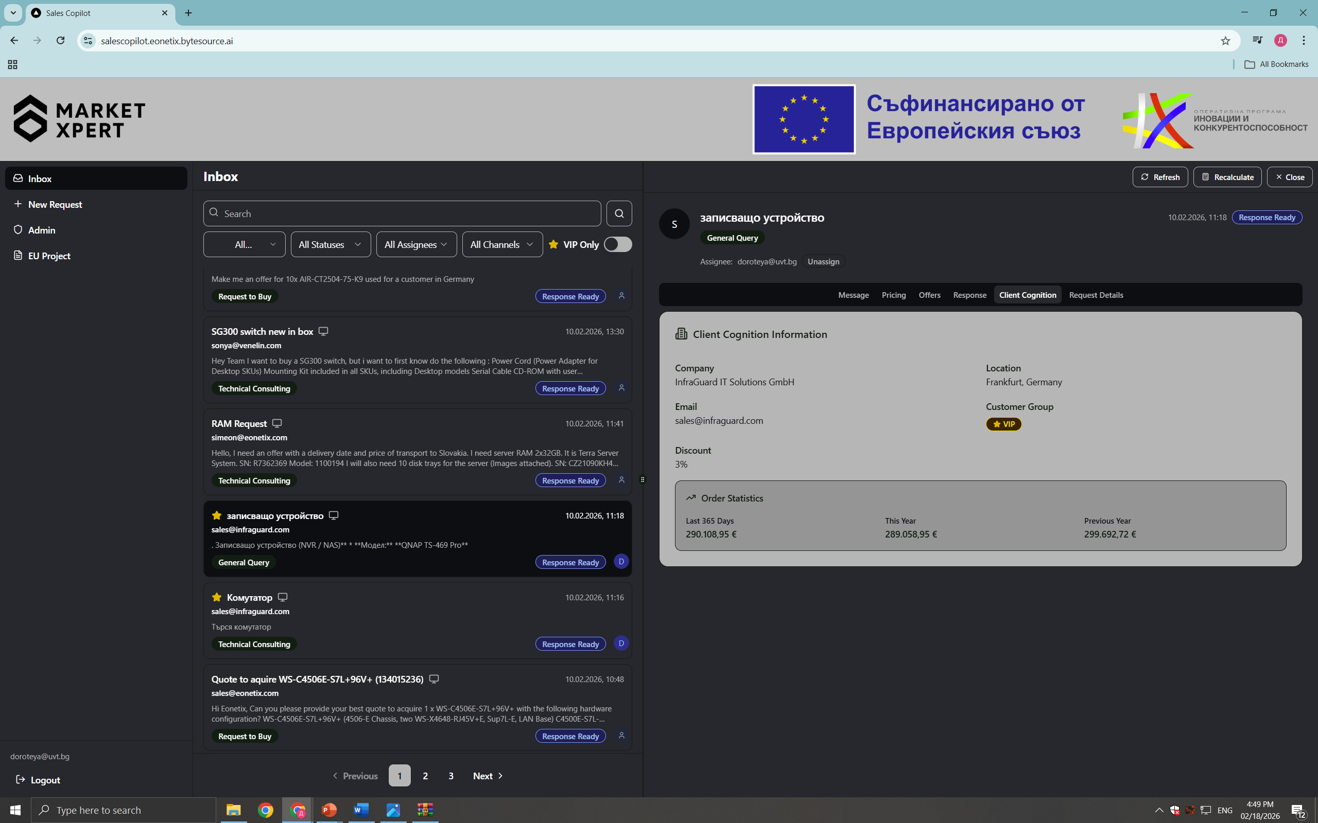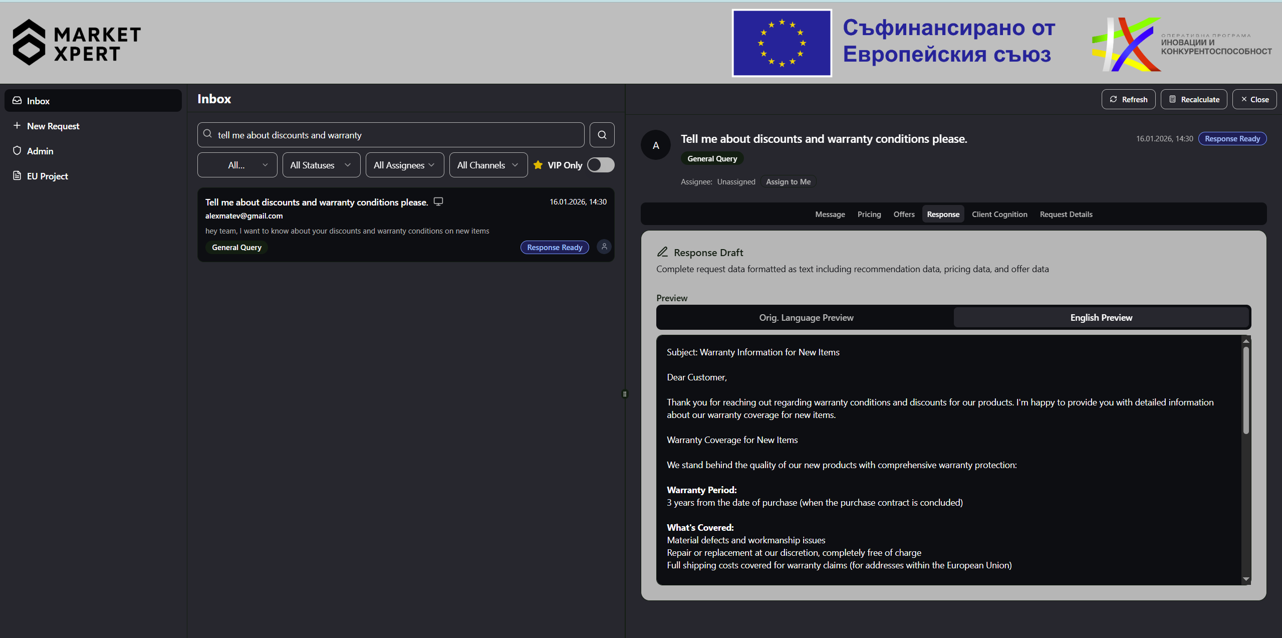 Market Xpert turns inquiries into clear tasks and prepares a ready-made offer according to your rules and templates.